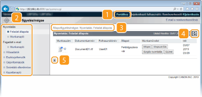Megjeleníti az [Állapotfigyelés/mégse] lapot. Ezen a lapon ellenőrizheti a nyomtatás állapotát, törölheti a nyomtatást, és megtekintheti a korábbi nyomtatási feladatokat.