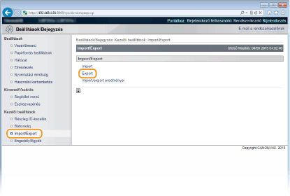 A készülék beállításait exportálhatja, és számítógépre mentheti. Javasoljuk, hogy rendszeresen készítsen biztonsági mentést a fontos beállításokról.