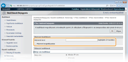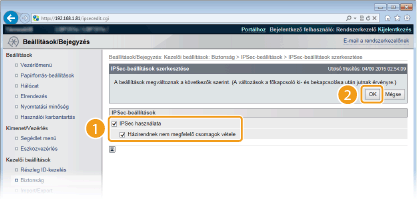 Jelölje be a [IPSec használata] jelölőnégyzetet, és kattintson a [OK] gombra.