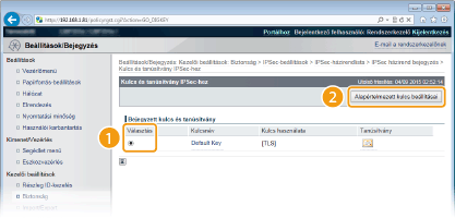 Válassza ki a használni kívánt kulcspárt, majd kattintson az [Alapértelmezett kulcs beállításai] elemre.