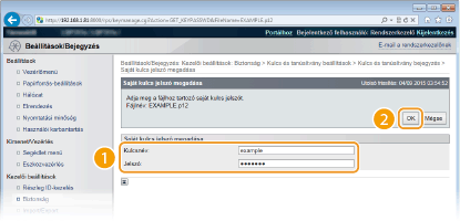 Adja meg a kulcspár nevét és a jelszót, majd kattintson az [OK] gombra.