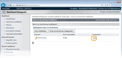 Kattintson a [Kulcs és tanúsítvány beállítások] gombra egy kulcspár ellenőrzéséhez, vagy a [CA tanúsítvány-beállítások] gombra egy CA tanúsítvány ellenőrzéséhez.