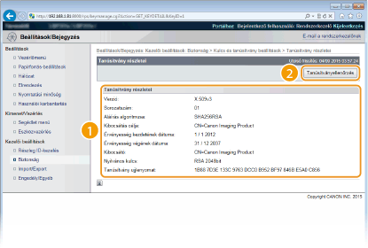 Ellenőrizze a tanúsítvány részleteit, majd kattintson a [Tanúsítványellenőrzés] gombra.