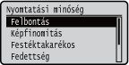 Rövid leírás kíséretében ismertetjük a nyomtatási minőség beállításait, többek között a felbontást és a fedettséget. Az alapértelmezett beállítások mellett a (