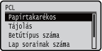 Rövid leírás kíséretében ismertetjük a PCL vezérlőparancsok használata esetén elérhető beállításokat. Az alapértelmezett beállítások mellett a (