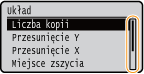 Gdy nie wszystkie elementy można wyświetlić naraz na jednym ekranie, po jego prawej stronie widoczny jest pasek przewijania. Jeśli wyświetlony jest pasek przewijania, do poruszania się w górę lub w dół służą przyciski