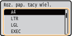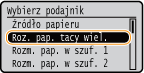 wybierz opcję <Roz. pap. tacy wiel.> i naciśnij przycisk
