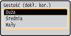 Wybierz opcję <Gęstość> i naciśnij przycisk