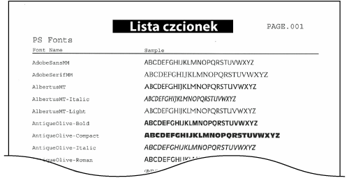 Pozwala sprawdzić listę czcionek dostępnych w trybie PS.