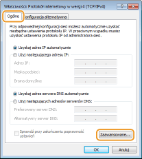 Zaznacz pole wyboru [Protokół internetowy w wersji 4 (TCP/IPv4)] lub [Protokół internetowy] i kliknij przycisk [Właściwości].