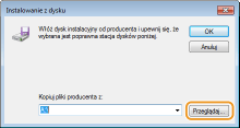 Wybierz kolejno opcje [UFR II] — język użytkownika — [32BIT] — Folder [Driver] (Sterownik) na dysku User Software CD-ROM/DVD-ROM (Dysk CD-ROM/DVD-ROM z oprogramowaniem użytkownika).