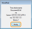 Anulowanie z poziomu aplikacjiW niektórych aplikacjach wyświetlany jest ekran podobny do poniższego. Wydruk można anulować, klikając przycisk [Anuluj].
