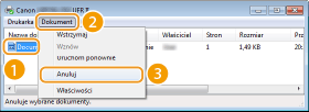 wybierz dokument, który chcesz anulować i naciśnij przycisk