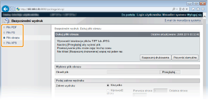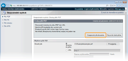 Istnieje możliwość wydrukowania pliku z poziomu przeglądarki internetowej (Zdalnego interfejsu użytkownika) bez jego otwierania. Ponadto można również wydrukować plik PDF zamieszczony w sieci poprzez podanie wyłącznie jego adresu URL.