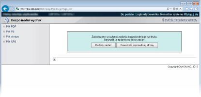 Kliknięcie opcji [Do listy zadań] spowoduje wyświetlenie strony [Stan zadania] ze stanem drukowania. Sprawdzanie bieżącego stanu drukowanych dokumentów