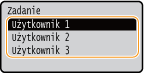 Jeśli na karcie SD przechowywane są dokumenty zabezpieczone, utworzone przez kilku użytkowników, wówczas przed wyświetleniem powyższego ekranu zostanie wyświetlony ekran wyboru użytkownika. Wybierz swoją nazwę użytkownika i naciśnij przycisk