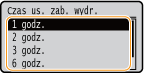 Wybierz opcję <Czas us. zab. wydr.> i naciśnij przycisk