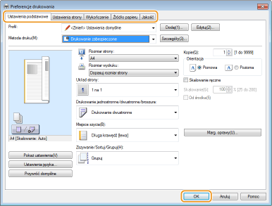 Określ ustawienia drukowania według potrzeb i kliknij przycisk [OK].