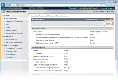 Za pomocą Zdalnego interfejsu użytkownika można zmieniać różne ustawienia urządzenia. Większość ustawień można konfigurować także w urządzeniu, ale niektóre z nich mogą zostać zmienione tylko za pomocą Zdalnego interfejsu użytkownika.