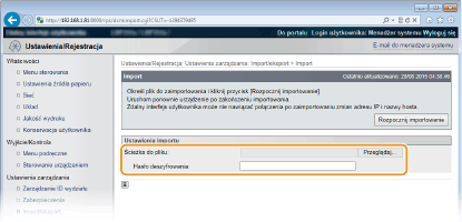 Wskaż importowany plik ustawień, a następnie wprowadź hasło.