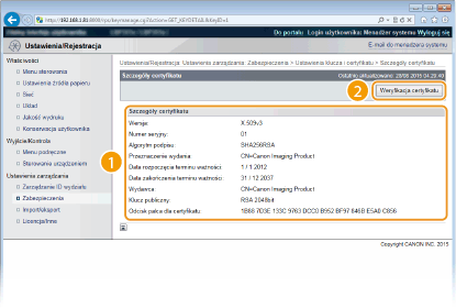 Na tym ekranie można przeglądać szczegóły dotyczące certyfikatu.
