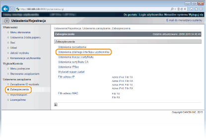 Kliknij [Zabezpieczenia]  [Ustawienia zdalnego interfejsu użytkownika].