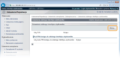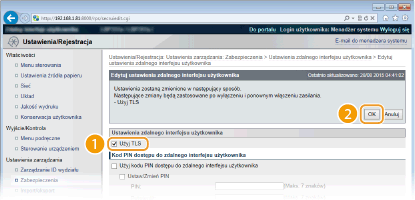 [Użyj TLS] Korzystając z protokołu TLS na potrzeby komunikacji Zdalnego interfejsu użytkownika, należy zaznaczyć to pole wyboru. Jeśli nie jest on używany, należy usunąć zaznaczenie tego pola.