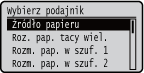 Wspólne ustawieniaUstawienia są takie same, jak dla opcji <Źródło papieru> w Menu konfiguracji. Wprowadzone tutaj ustawienia zostaną również zastosowane do ustawień <Źródło papieru>.