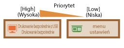 Ustawienia zdefiniowane w sterowniku drukarki będą miały pierwszeństwo nad ustawieniami wprowadzonymi w panelu roboczym.