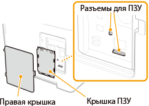 В этом разделе рассматривается порядок установки в аппарат модуля Barcode Printing Kit или PCL International Font Set. Для использования ПЗУ его необходимо подключить к разъемам ПЗУ под правой крышкой аппарата. | ![]() |