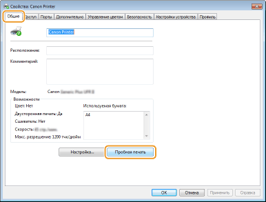 Щелкните [Пробная печать] на вкладке [Общие].