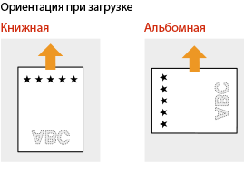 При использовании бумаги с предварительно напечатанным логотипом обратите внимание на ориентацию листа при загрузке. Загружайте бумагу правильно, чтобы печать выполнялась на соответствующей стороне листа с логотипом.