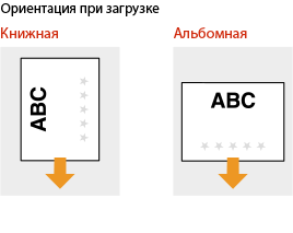 В этом разделе приводится, главным образом, описание порядка загрузки уже отпечатанной бумаги с правильным размещением лицевой стороны и в надлежащей ориентации. Описание общей процедуры загрузки бумаги в кассету для бумаги или универсальный лоток см. в следующих разделах. |