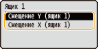 С помощью параметров <Смещение Y> и <Смещение X> в меню настройки на панели управления можно настроить положения печати для печати всех типов независимо от источника бумаги. Положение печати можно настраивать в диапазоне -50,0 мм – +50,0 мм с шагом 0,5 мм в каждом направлении: по вертикали и по горизонтали. Смещение Y/Смещение X |