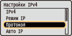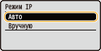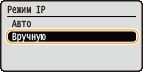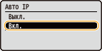 3 | Выберите <Использовать DHCP>, <Использовать BOOTP> или <Использовать RARP> и нажмите . Можно использовать только один из протоколов DHCP, BOOTP и RARP. Если для выбранного протокола задано значение <Вкл.>, для остальных двух протоколов автоматически устанавливается значение <Выкл.>. |