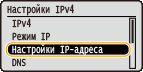 2 | Выберите <Настройки IP-адреса> и нажмите . |