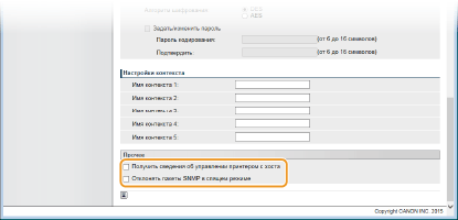 Если этот флажок установлен, доступ к аппарату приложений, в которых используется протокол SNMP (например, программное обеспечение Canon imageWARE Series), может оказаться невозможным.