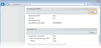 Имя рабочей группы, заданное в поле [Имя рабочей группы] в разделе [Настройки SMB], автоматически используется в качестве [Имя рабочей группы SMB] (при наличии). Изменение имени рабочей группы в поле [Имя рабочей группы SMB] также применяется к полю [Имя рабочей группы] в разделе [Настройки SMB].