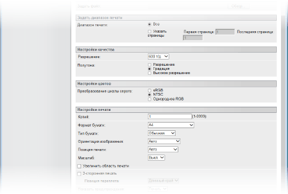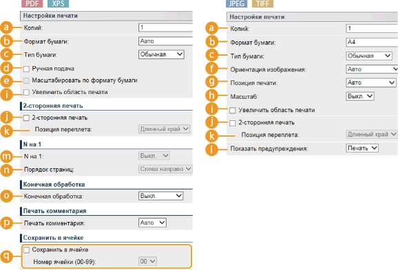 При задании настроек печати для XPS-файловСнимите флажок [Приоритет паспорта печати]. Если этот флажок установлен, некоторые пункты недоступны. ![]() |