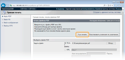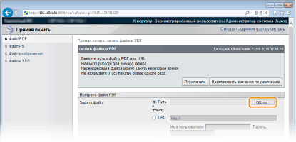 Файл можно распечатать из веб-браузера (Удаленный ИП), не открывая этот файл. Кроме того, PDF-файл из Интернета можно распечатать, указав только его URL-адрес.