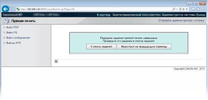 Если нажать кнопку [К списку заданий], открывается страница [Состояние задания], которая показывает состояние печати. Проверка состояния документов для печати