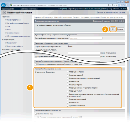 Можно ограничить использование кнопок панели управления, чтобы исключить случайное изменение настроек аппарата.