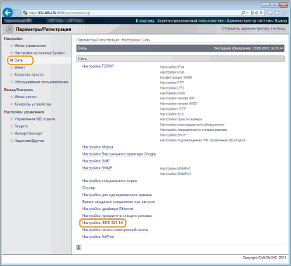 Щелкните [Сеть]  [Настройки IEEE 802.1X].