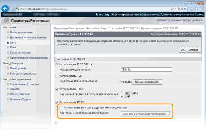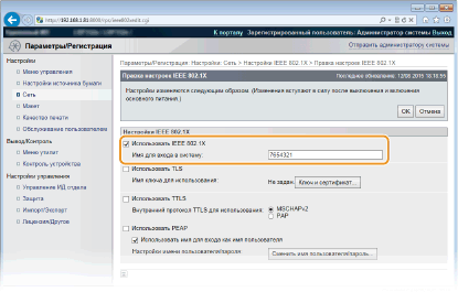 Установите флажок [Использовать IEEE 802.1X], введите имя для входа в систему в поле [Имя для входа в систему] и задайте необходимые параметры.
