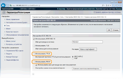 Установите флажок [Использовать TTLS] или [Использовать PEAP].