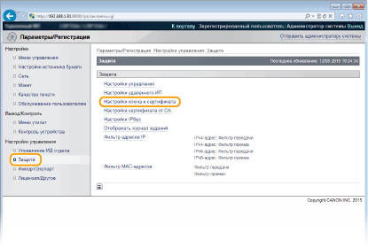 Пару ключей невозможно удалить, если ключи используются в каких-то целях, например, если под [Использование ключа] отображается "TLS" или "IEEE 802.1X". В этом случае отключите функцию или заменить пару ключей перед их удалением.
