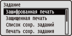 ![]() | Можно печатать документы, хранящиеся на SD-карте, и печатать журнал. При нажатии кнопки ( ) на панели управления отображается меню заданий. Указанные ниже настройки можно задавать, когда аппарат находится в отключенном режиме. |