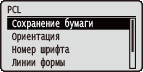 ![]() | Для всех настроек, относящихся к управляющим командам PCL, указано краткое описание. Настройки по умолчанию отмечены крестиком ( ). |