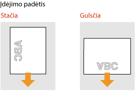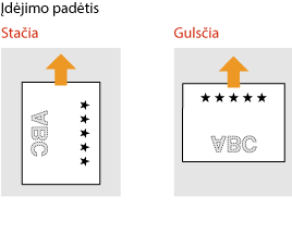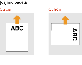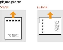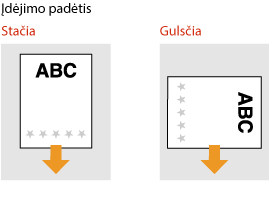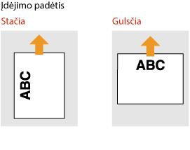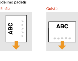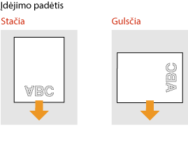 Kai naudojate popierių, ant kurio išspausdintas logotipas, dėdami atkreipkite dėmesį į popieriaus padėtį. Įdėkite popierių taip, kad būtų spausdinama toje popieriaus pusėje, kurioje išspausdintas logotipas.