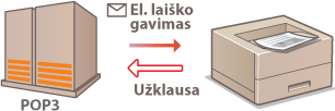Šiame skyriuje aprašyta, kaip nurodyti el. laiškų gavimo ir spausdinimo šiuo aparatu parametrus. Naudodami kompiuterį nurodykite el. laiškų gavimo parametrus, o aparato valdymo pulte nurodykite el. laiškų spausdinimo parametrus.